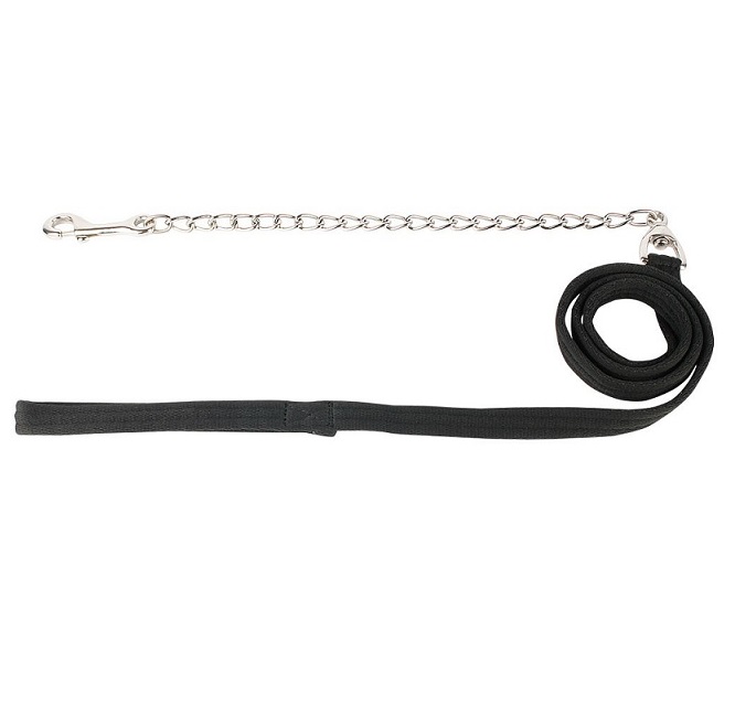 Прочный чумбур, сделанный из мягкого полиэстера, с удобной петлей для руки и крепкой стальной цепочкой с карабином. Длина мягкой тесьмы - 200 см, цепочка - 50 см.