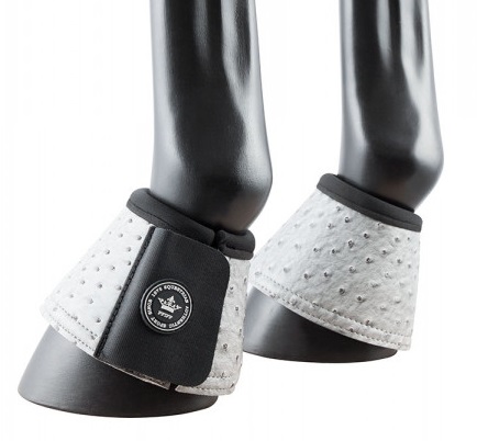 Колокольчики с наружным покрытием под кожу, оснащенные надежной двойной липучкой и мягким неопреновым кантом в области венчика. Колокольчики защищают копыта и венчик лошади от возможных ударов и травм. Идеальны для повседневного использования или турниров.