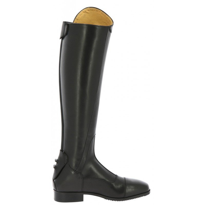 Элегантные сапоги для верховой езды из очень мягкой телячьей кожи премиум качества. Подкладка также выполнена из телячьей кожи и обеспечивает оптимальную воздухопроницаемость. Кожаный защитный клапан с упорами для шпор, который закрывает нижнюю часть молнии. Эластичная резиновая вставка по бокам задней молнии позволяет увеличить объем голенища до 3 см. Цвет: черный