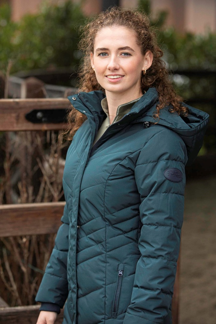 Женская куртка Harrys Horse Trendy Senna — это стильная и функциональная удлиненная модель, разработанная специально для верховой езды. Она сочетает стеганые элементы, эластичные вставки, имеет удобный капюшон и боковые молнии для комфортной езды а в седле. Куртка выполнена из практичных материалов (полиэстер) с учетом последних модных тенденций. Размеры европейские Машинная стирка при 30 С