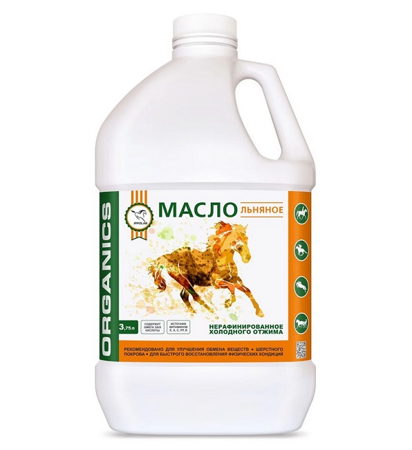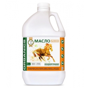 Масло №1 для лошадей. Показано к использованию для нормализация обмена веществ и оптимизации витаминно-минерального баланса, при ослабленном иммунитете, для повышения калорийности рациона и в качестве источника "медленной энергии" для спортивных лошадей, для улучшения качества копытного рога а также шерстного и кожного покрова. Льняное масло получают из семян льна холодным прессованием (в семени его содержится до 48%). Именно при таком способе масло сохраняет целебные свойства и может применяться в лекарственных целях. По ценности это масло занимает по праву первое место среди остальных пищевых масел и содержит множество полезных веществ (полиненасыщенные кислоты, насыщенные кислоты (10% состава) витамины F, E, A, B, K). Масло изо льна является отменным внешним источником полиненасыщенных Омега-3 и 6. При этом, если Омега-6 есть также в подсолнечном, соевом, горчичном, оливковом и рапсовом масле, то Омега-3 в достаточном количестве содержится исключительно в льняном масле. Масло льна содержит фитостеролы, витамины К, Е и холин, а также фосфор, кальций и цинк. Кроме того, это ценный источник лигнанов. СПОСОБ ПРИМЕНЕНИЯ И ДОЗИРОВКА Лошадь весом 500 кг: от 50 до 100 мл в день, в зависимости от состояния и животного Жеребятам и пони: до 40 мл в день. Вводить в рацион постепенно. Добавлять в корм, тщательно размешивая. Для оптимального усвоения рекомендуется скармливать дневную порцию за 2-3 кормления. Хранить в сухом, тёмном месте при температуре от 0 до +25?С 12 месяцев с момента производства.