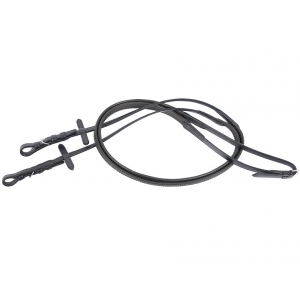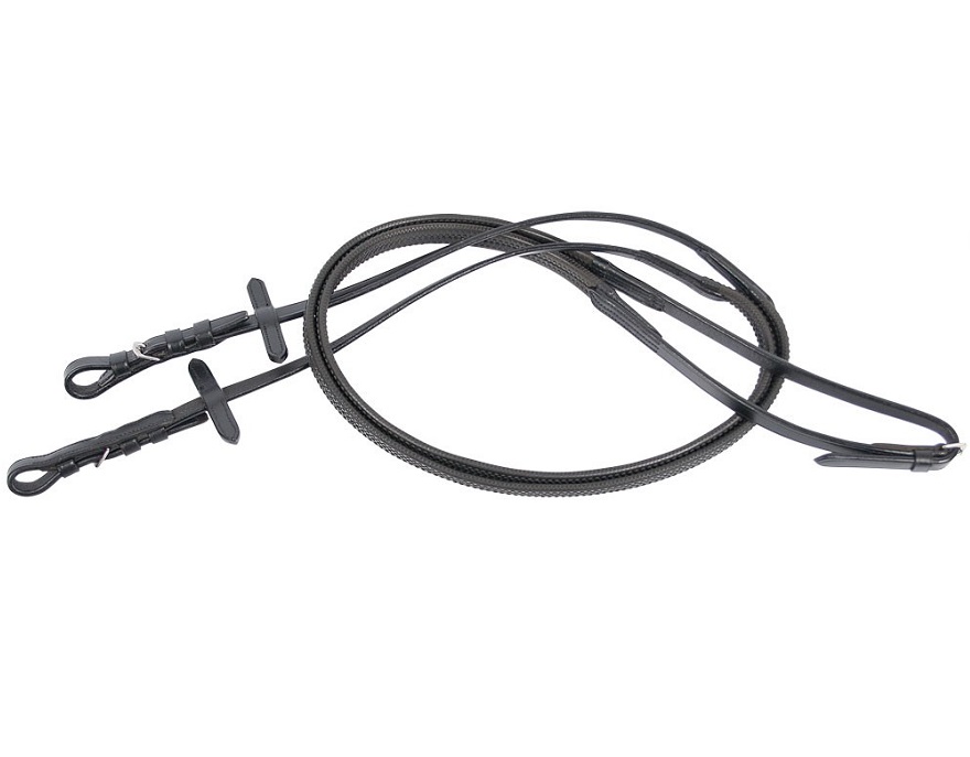 Мягкий повод с прочным нейлоновым основанием, покрытый резиной с выступами. Мягкая резина поможет вам крепко держать поводья в руках даже во влажных погодных условиях. Они не будут проскальзывать в вашей руке как в жаркую погоду, так и когда шея вашей лошади вспотеет. Фурнитура из нержавеющей стали.