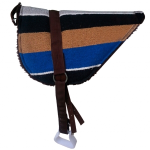 Седло-пад сделано в стиле Новахо (Navajo Bareback Saddle). Идеально подойдет для любителей поездить без седла, но при этом сохранит спину лошади. Прочная тесьмяная ручка, подпруга и путлища. Подкладка из искусственного меха