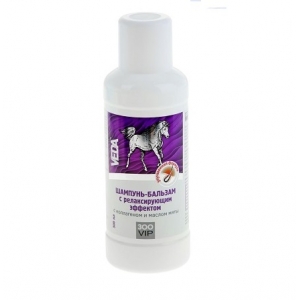 Производитель: Веда, Россия. Концентрированный шампунь обеспечивает профессионально высокое качество гигиенического ухода за лошадью. Тщательно очищает шерсть, одновременно кондиционируя и полируя волос, обеспечивает укладку «волосок к волоску», отталкивает грязь, придаёт лоск и блеск внешнему виду лошади. В состав средства входят активные вещества: глицерин, коллаген, мята, ромашка. Шампунь-бальзам рекомендован для повседневного использования у животных, испытывающих нервное или физическое напряжение. Шампунь приятно охлаждает кожу, обеспечивая психологический комфорт во время процедуры мытья у легко возбудимых животных. Объем: 500мл.